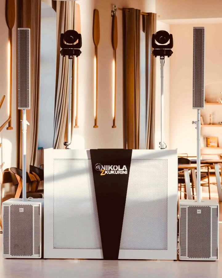 The job of a wedding DJ starts long before guests enter the wedding hall and lasts until the last one, the one in the ‘best mood’, leaves the hall. A wedding DJ is in fact a coordinator of good entertainment and our role starts with our first contact. Creating a schedule, preparing music and agreeing on the music playlist with the bride and groom, loading equipment, installing and testing it, adjusting the lighting, all this precedes pressing the small and magic ‘play’ key. It is then that the show starts.